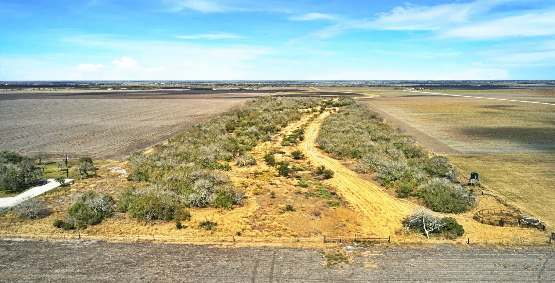 * Recreation: Partially wooded area with mature mesquites and a seasonal wet-weather pond, creating a premier “water stop” for elite dove hunting.