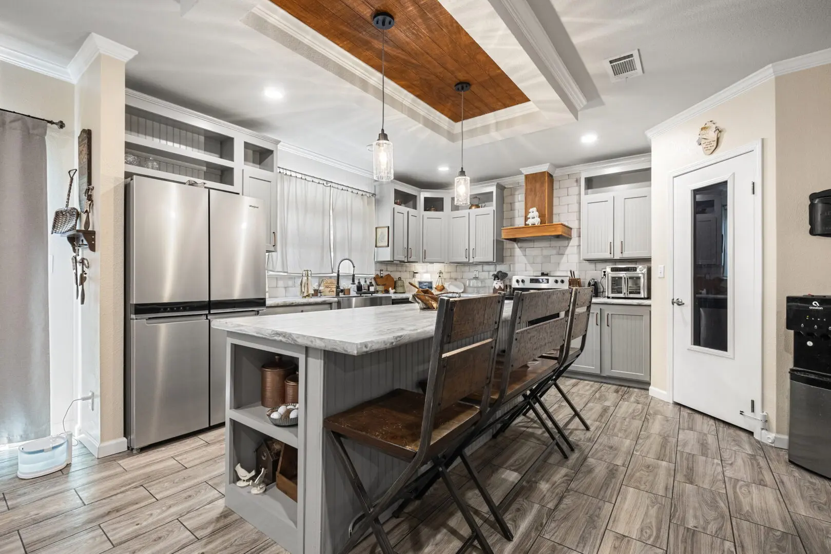 Experience the pinnacle of South Texas versatility on this sprawling 59.12-acre San Patricio County compound offering exceptional space and high-end upgrades throughout. The main 4BD/3BA defines luxury with dual primary suites, coffered ceilings, and a dedicated media room. The chef’s “baker’s kitchen” features an oversized island, coffee bar, abundant storage, and stainless appliances. Enjoy stunning sunrise and sunset views from covered front/back patios overlooking a 2023 inground freshwater pool.
