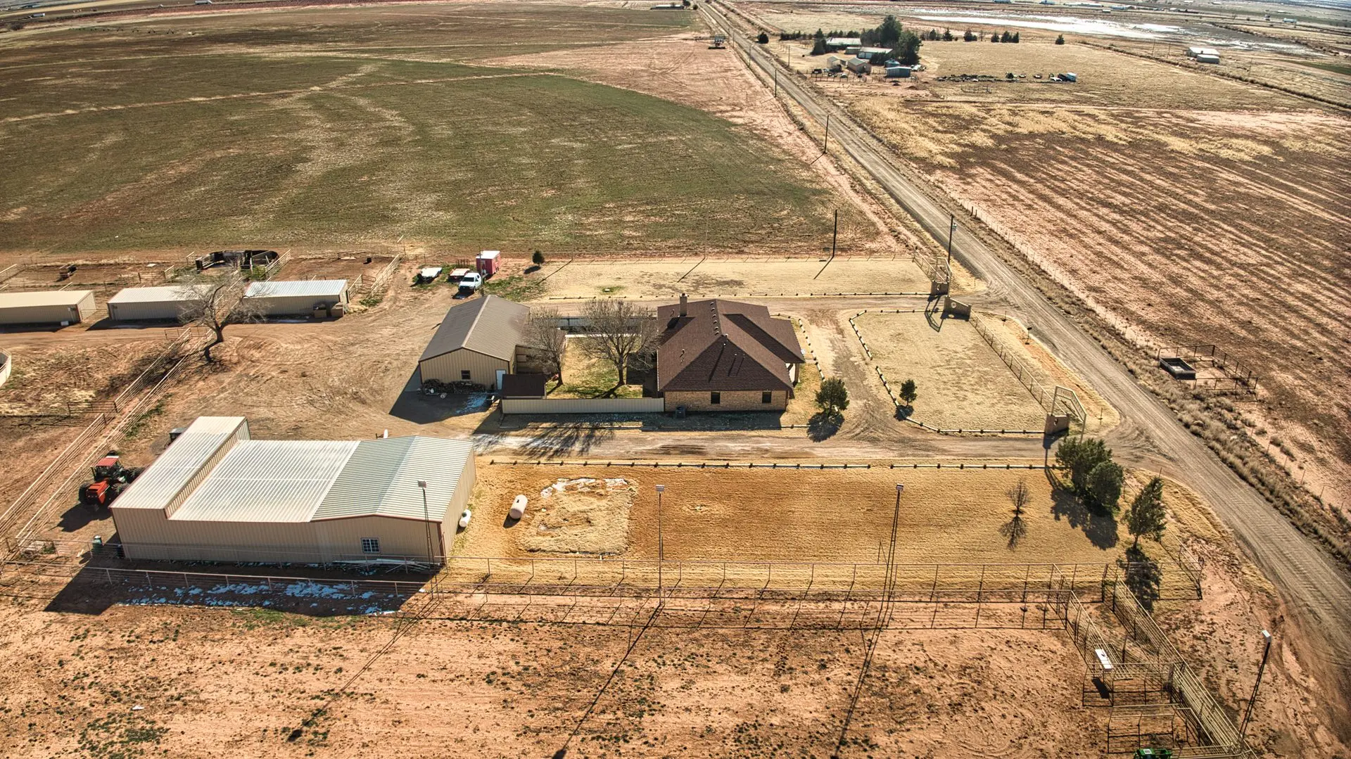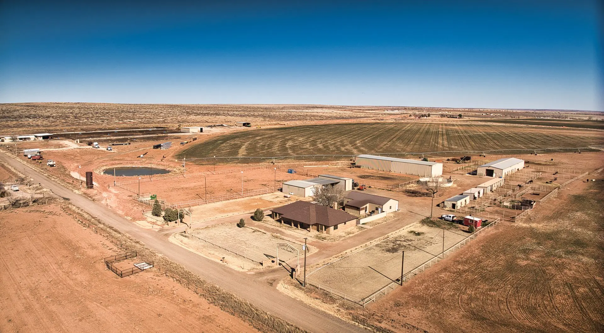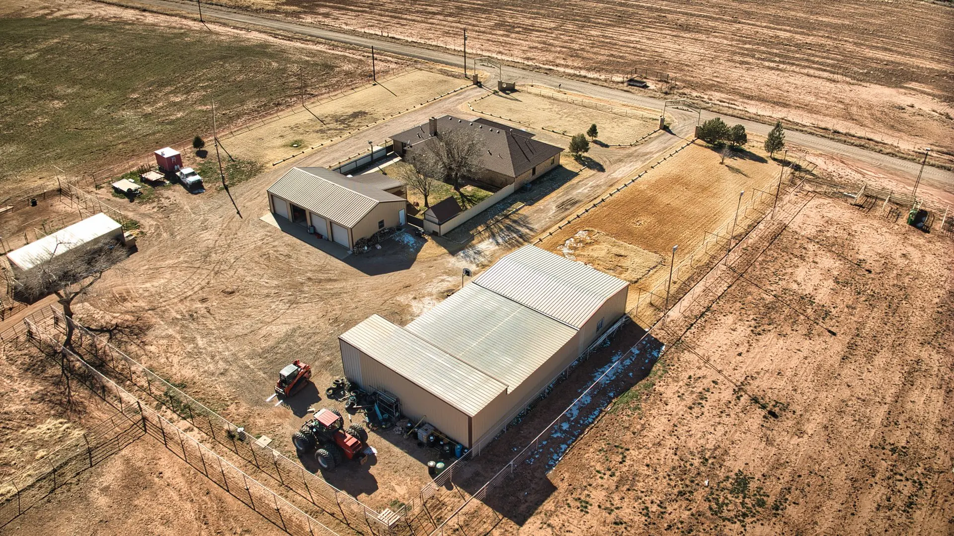 Equestrian enthusiasts will appreciate the 6,000 sq ft horse barn, complete with 10 stalls, a round pen, a walker, and a professionally designed rolling arena. The property also boasts a 1,000-head feed yard, a 5,400-square-foot hay barn, and extensive commodity storage, ensuring seamless large-scale operations.