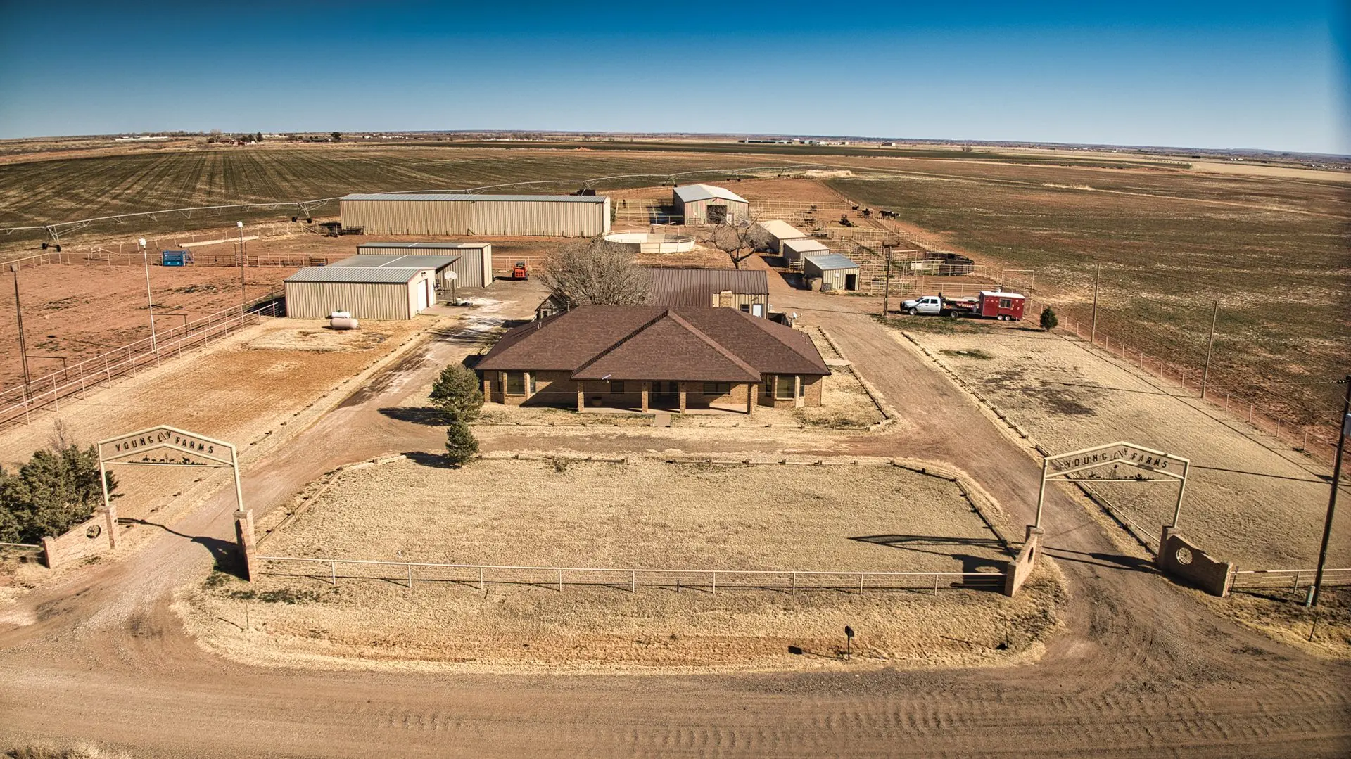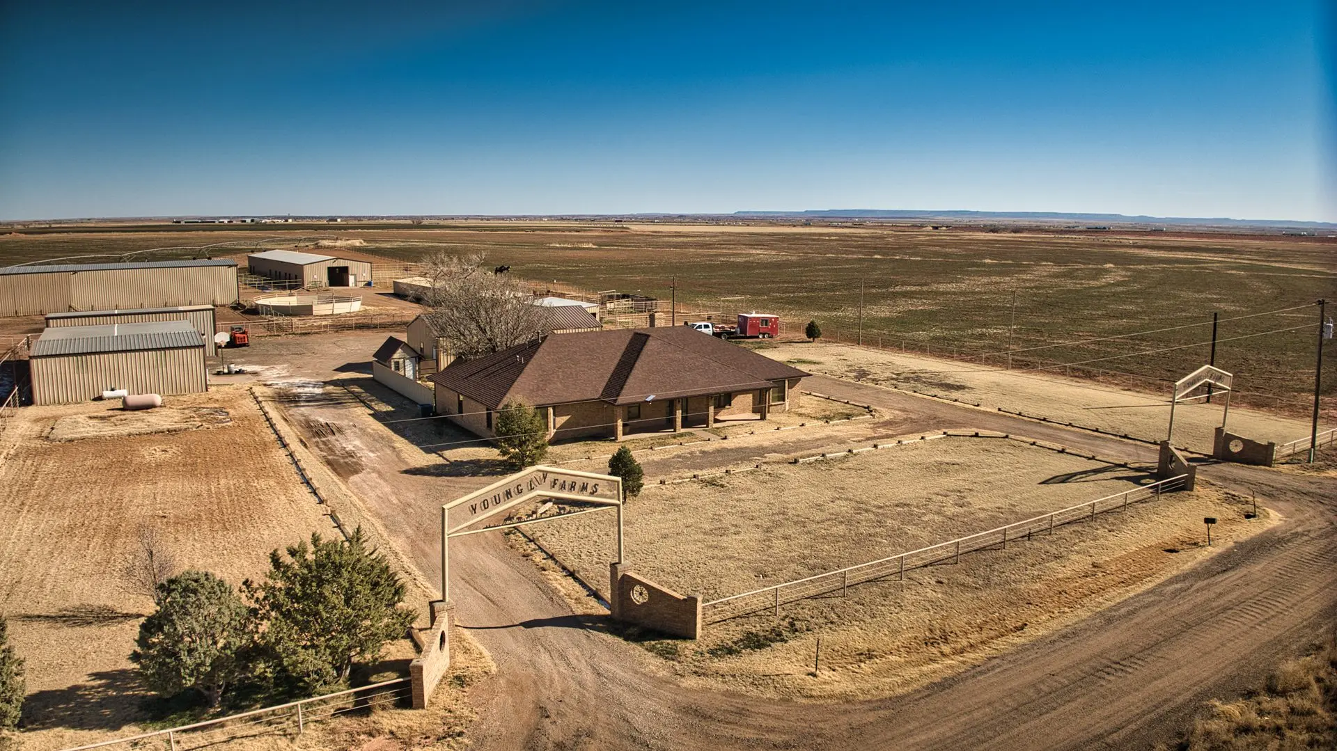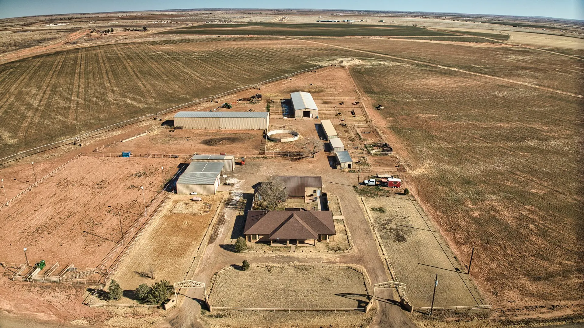 Equestrian enthusiasts will appreciate the 6,000 sq ft horse barn, complete with 10 stalls, a round pen, a walker, and a professionally designed rolling arena. The property also boasts a 1,000-head feed yard, a 5,400-square-foot hay barn, and extensive commodity storage, ensuring seamless large-scale operations.