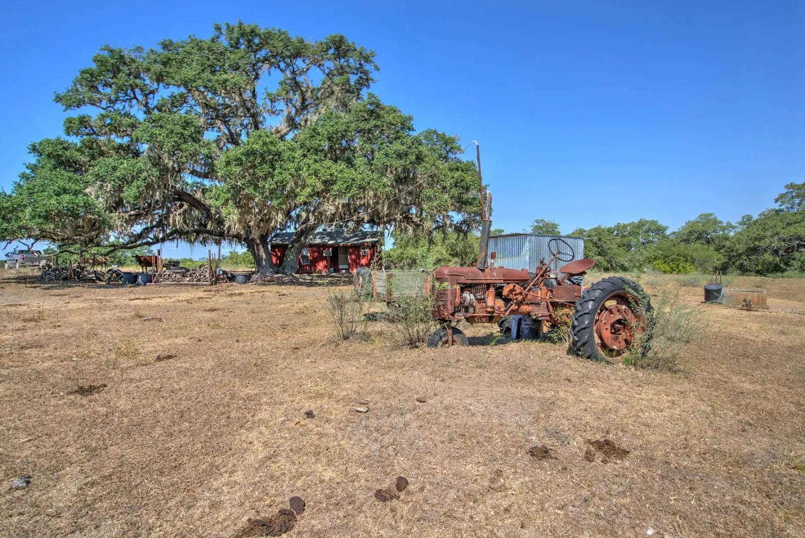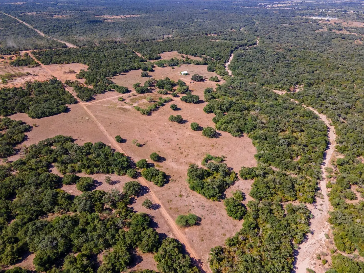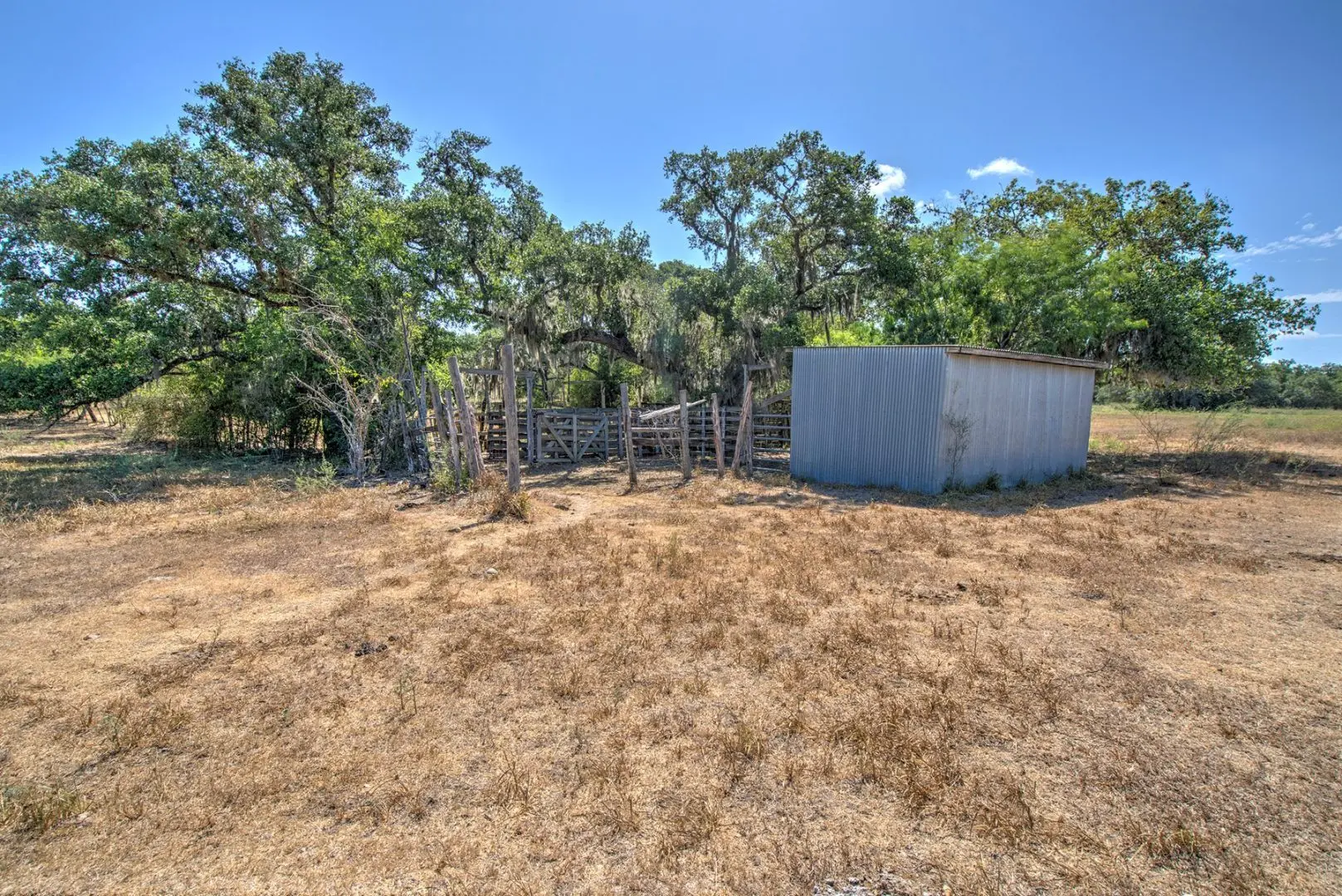 This ranch land in Thomaston, TX strikes a perfect balance, being conveniently accessible yet secluded from the hustle and bustle. There’s no looming threat of development or subdivision pressure in the vicinity. Exterior low fences are in place to accommodate cattle, and the property features a set of functional working pens. Vertical improvements are minimal, with a humble cabin and a reliable water well as the only structures on the land.