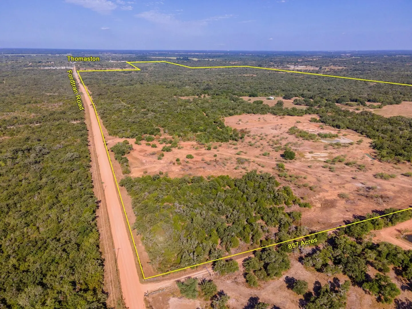 Unleash the boundless potential of this expansive 857+ acre ranch land in Thomaston — a truly rare gem of pristine, untouched terrain. Finding such an extensive parcel in this region is a true rarity. Situated strategically at the crossroads of Houston, Austin, San Antonio, and even Corpus Christi, this location fulfills the dreams of countless families seeking their own ranching legacy.