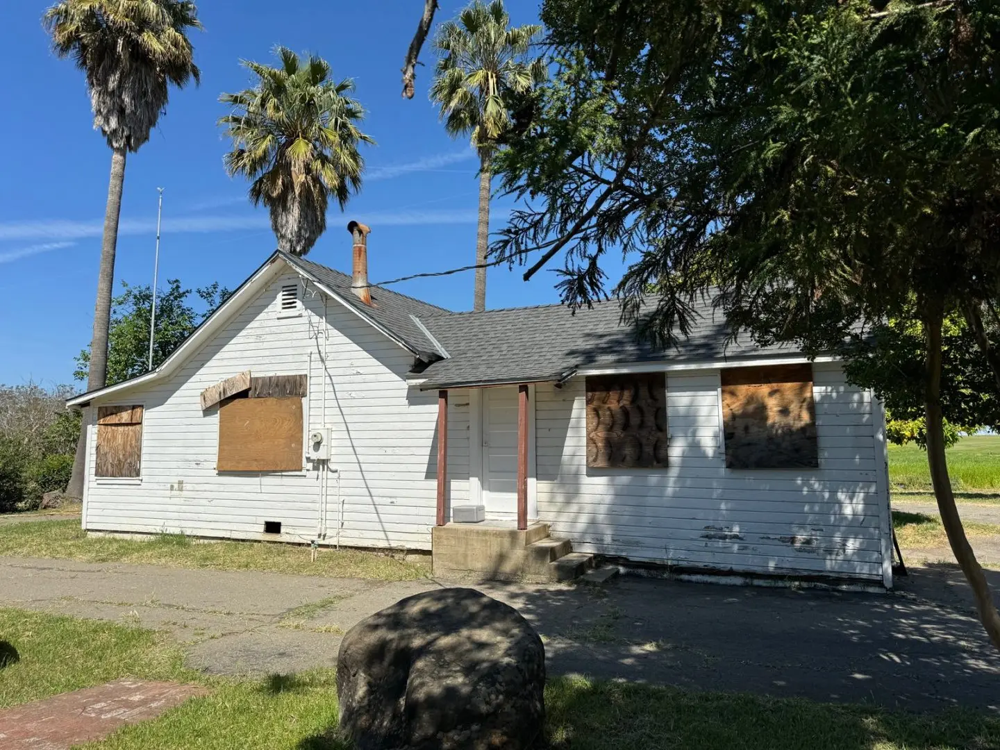 One home is not currently habitable but the compound is great with mature trees including citrus.