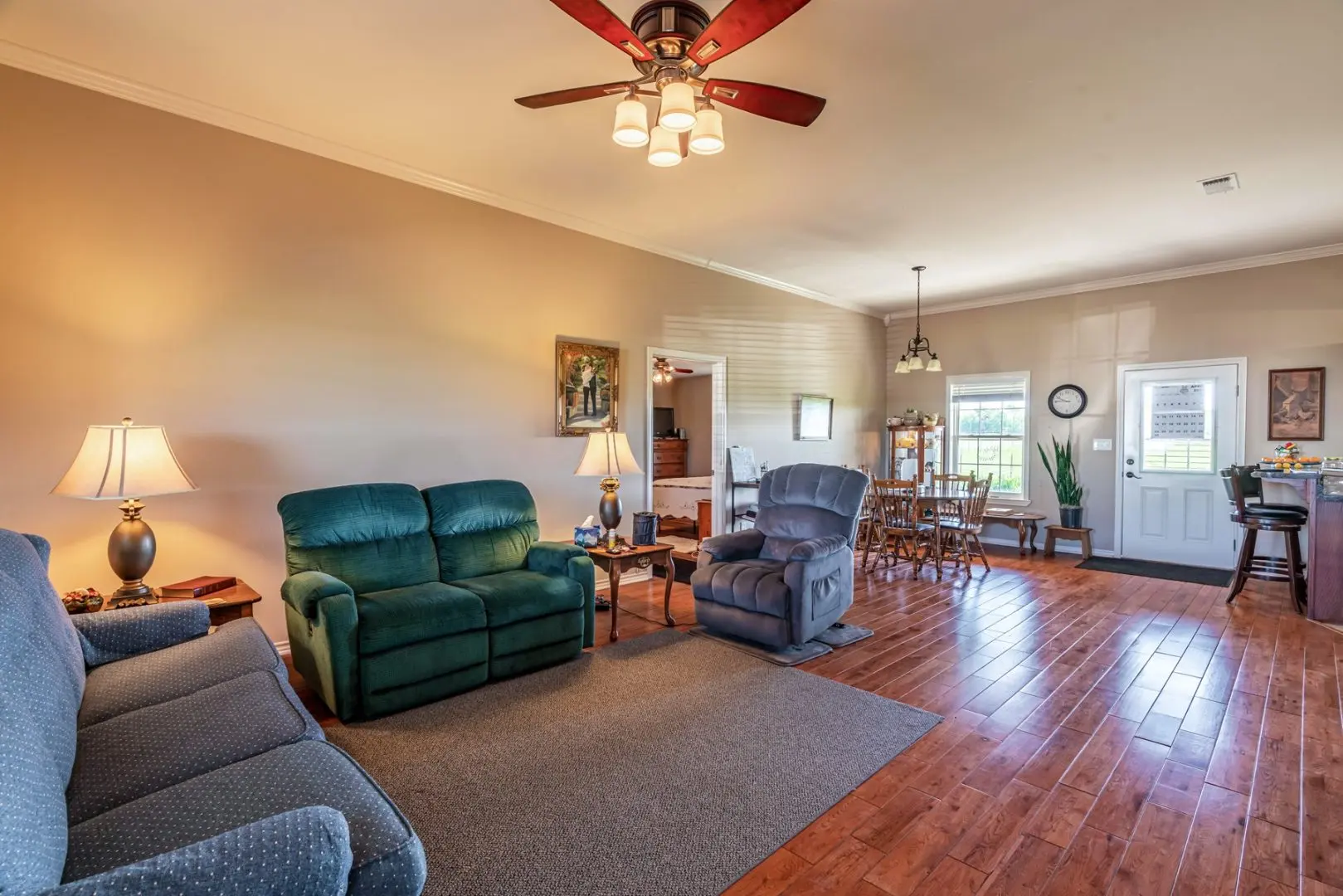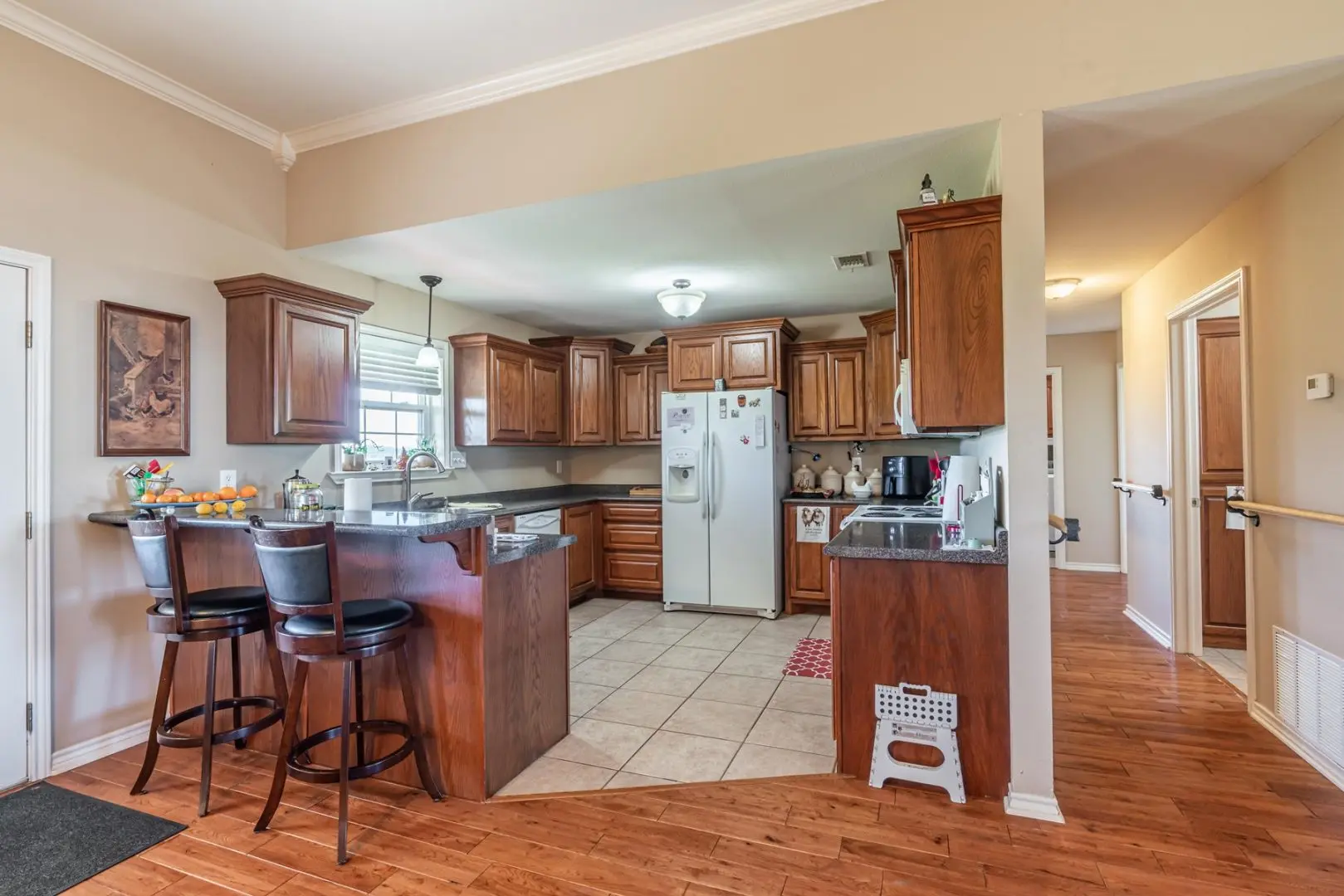 Updated 1,680+ sq. ft. ranch style home sits at the east end of the ranch. Private entry and gravel driveway. This brick home offers 3 bedrooms with 2 full baths.