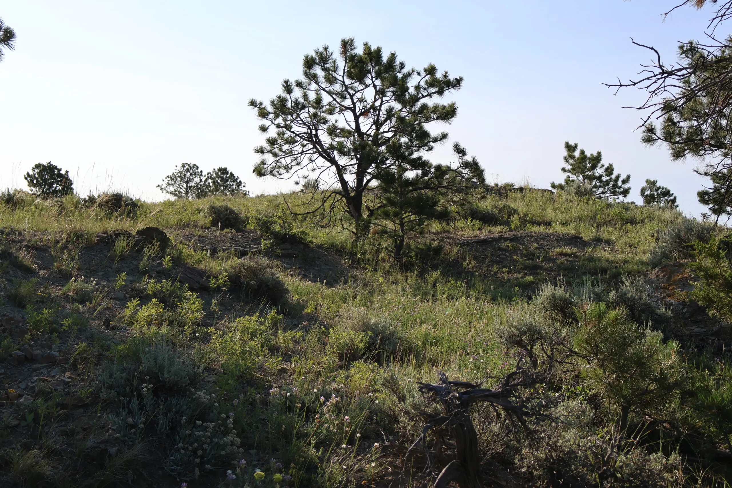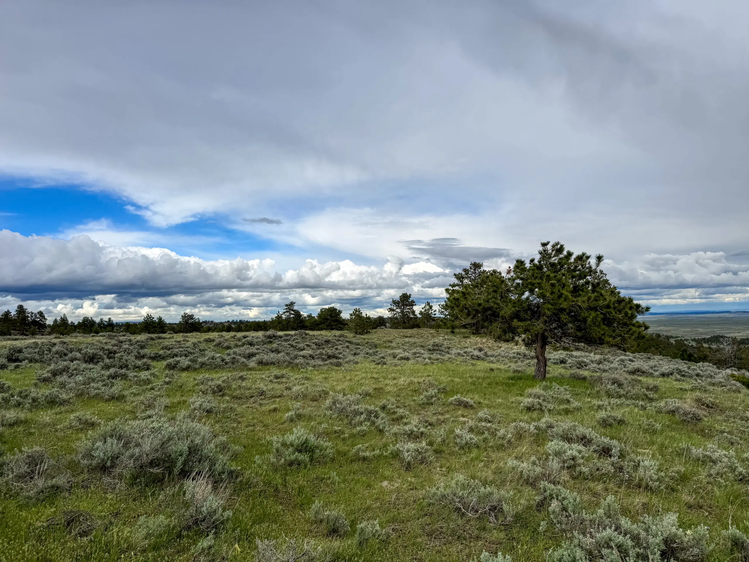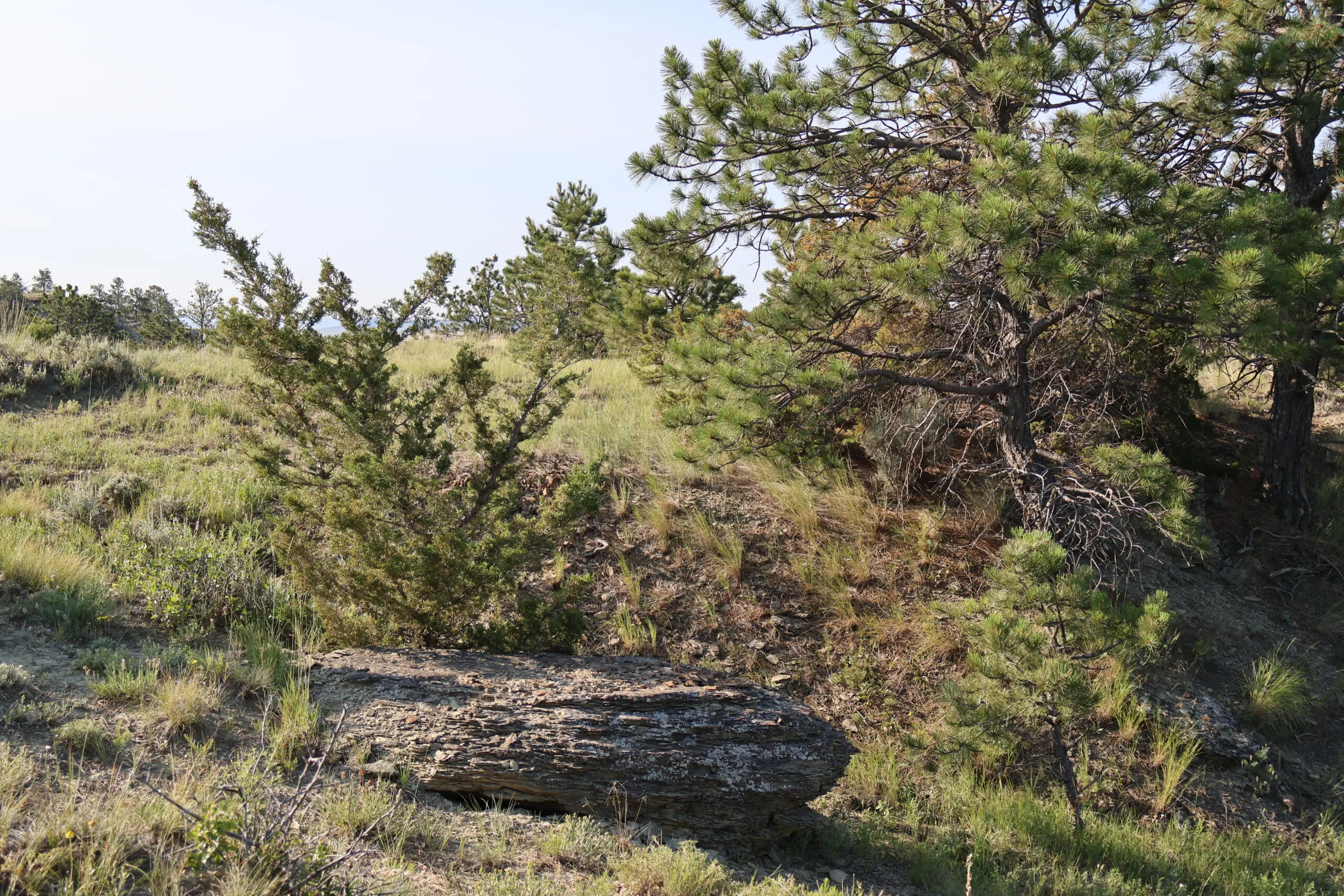 The land features a striking blend of rimrock walls, pine-covered ridges, and native grasslands interspersed with brush-filled draws and seasonal runoff channels. These natural features provide both scenic character and strong habitat for elk, mule deer, whitetail, antelope, and upland game birds. Game cameras have captured consistent wildlife presence throughout the year, confirming the ranch’s reliable food, water, and cover sources.