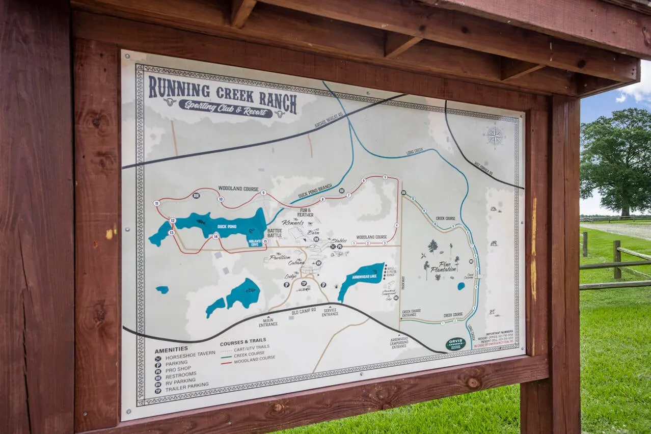 Arrowhead Cottage is a 2-bedroom, 2,100 SF lakeside cottage overlooking Arrowhead Lake. This cottage has tall ceilings and premium finishes and offers a commanding view of the ranch. It would make an ideal guest space or the owner’s quarters if the primary lodge was used commercially. Next to this cottage is a fully equipped 20 unit RV park. With a Mississippi Resort License, the ranch is uniquely positioned for diversified income — from equestrian and livestock operations to hospitality, events, and sporting retreats. Until 2026, the ranch was an operating an Orvis endorsed hunting grounds where hunters pursued both quail and pheasant and enjoyed 2 professional sporting clay courses. Orvis only endorses the finest hunting grounds where visitors encounter unparalleled service and facilities. For the buyer who understands that modern ranch ownership is both lifestyle and strategy, Running Creek Ranch delivers luxury living, working infrastructure, and multiple revenue streams — all in one exceptional Mississippi estate.