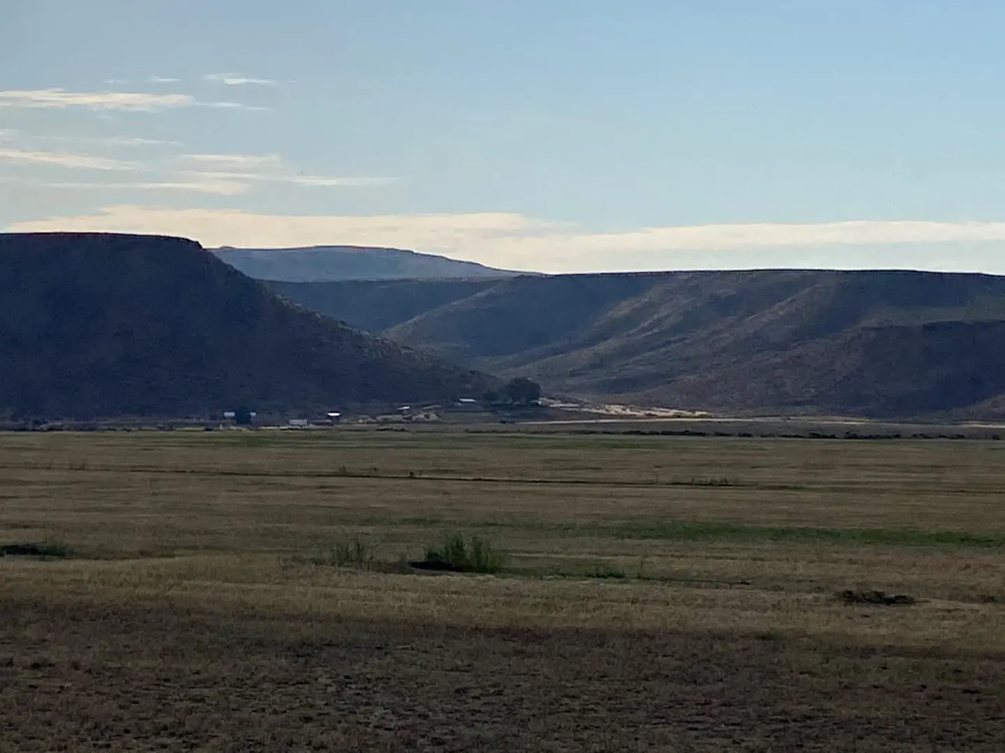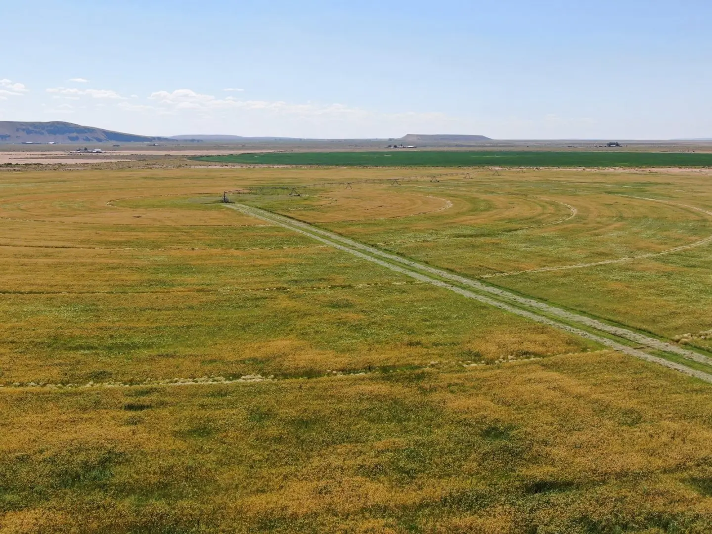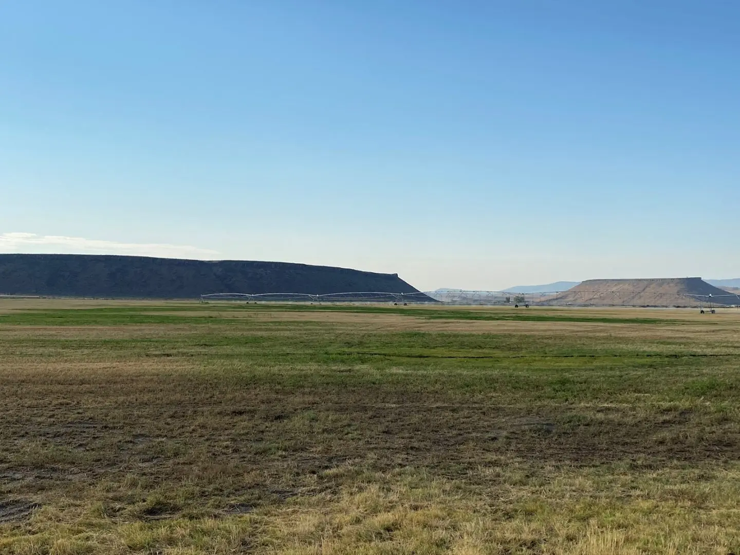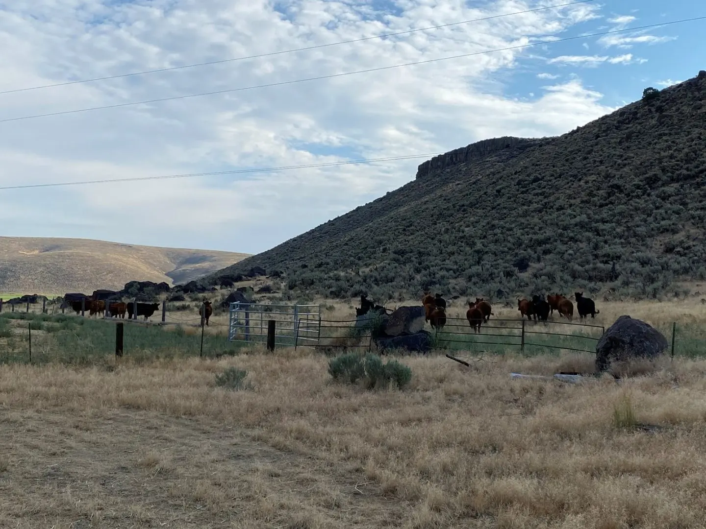 The ranch terrain ranges from valley flat lands where the irrigation is next to, westerly sloping hillside with draws, rimrocks, ranging 800’ in elevation overlooking the Harney Valley.