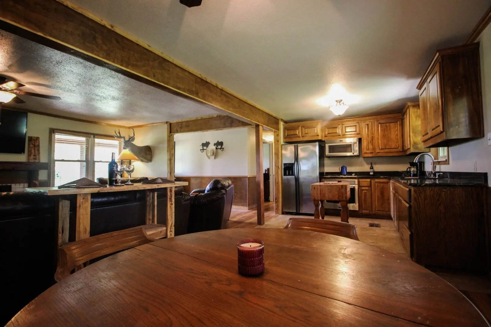 This secluded country home is 2,256 sq. ft. and has 3 bedrooms and 2 baths, 70% of which has recently been remodeled. This rustic hill country home has an open floorplan with the kitchen and dining room opening up to the living room. The bedrooms are good sized and there is plenty of storage space. The views from the primary bedroom deck take in the beautiful surrounding views of the countryside overlooking the seasonal creek and back of the property. There is a basement downstairs with a separate entrance perfect for storage.
