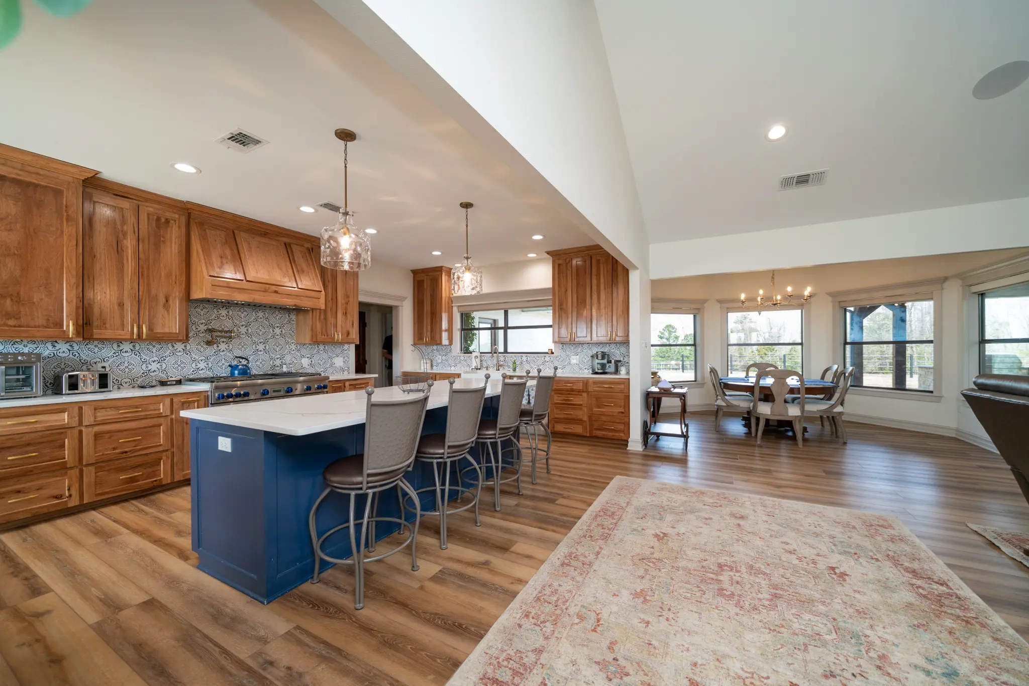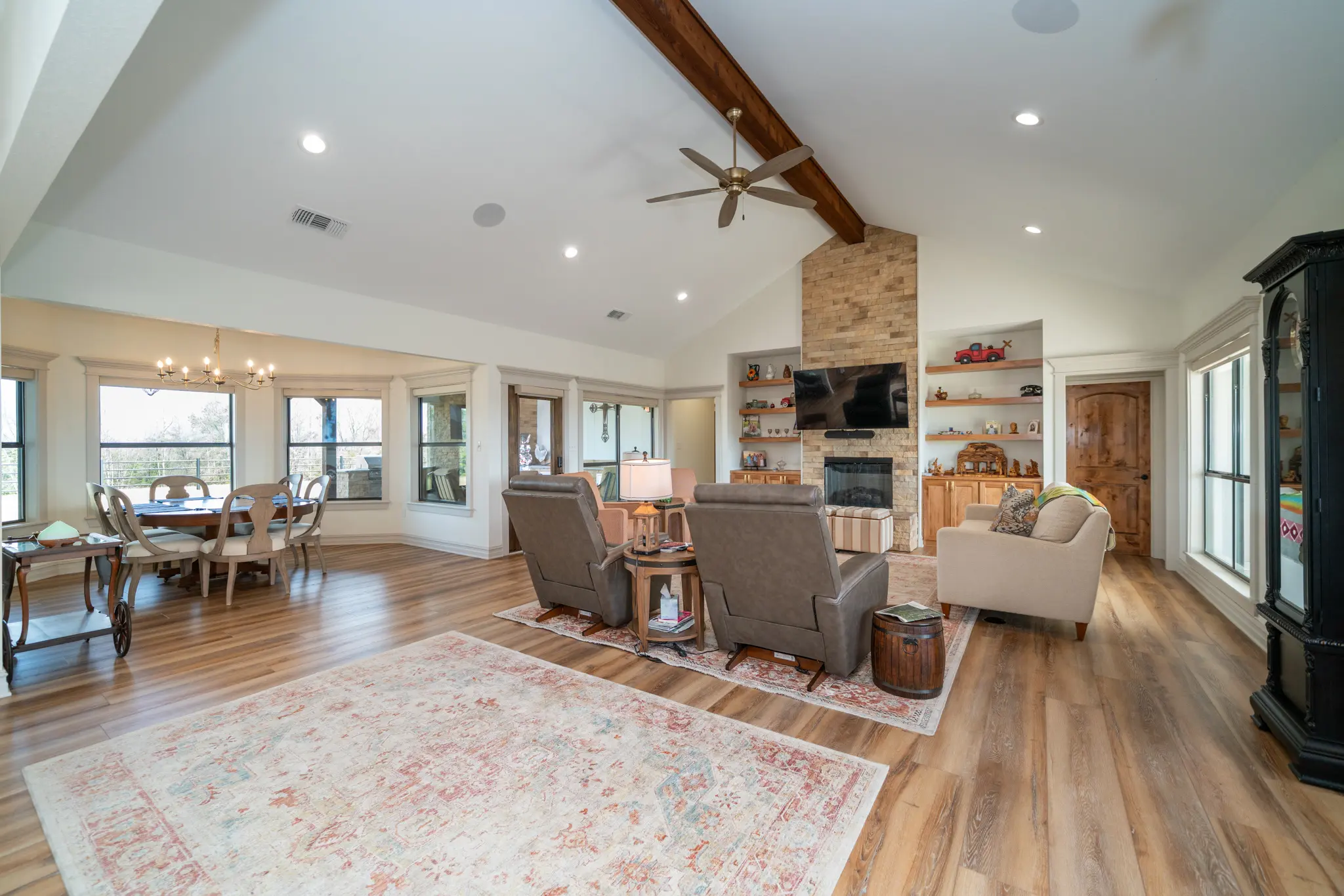 • The Main Estate (4BR/4BA): A high-ceiling masterpiece featuring a full Thermador suite (6-burner gas stove, fridge drawers, touch-faucets), soft-close cabinetry, and a massive game room with a pool table. Includes a 4-car garage, office, and outdoor kitchen.