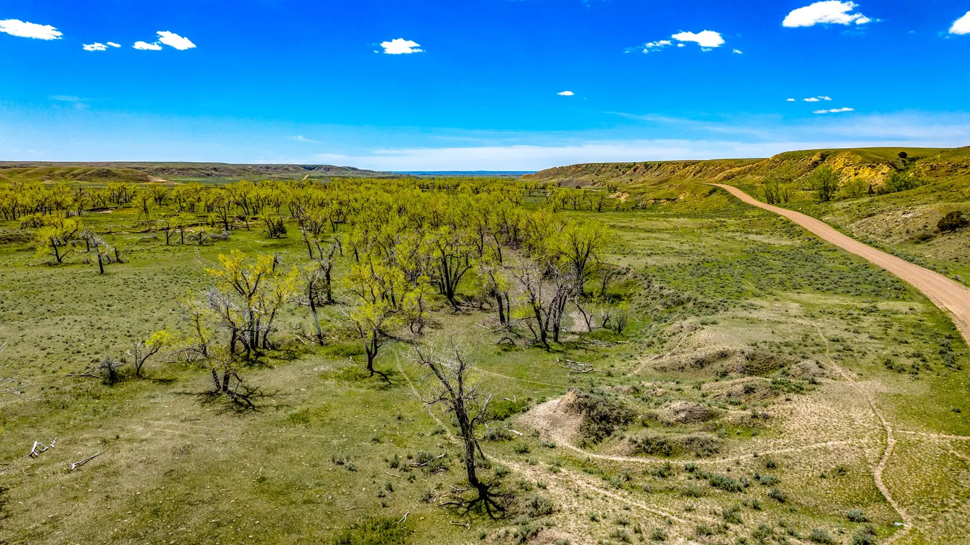 This ranch is equipped with excellent improvements and superb water rights. The Black Ranch is a classic Northeastern Montana ranch, offering a wide range of native grasses typical to the area, including western wheatgrass and blue grama. However, the topography of the ranch is extremely unique, with deep spring-fed, timber-filled coulees, badlands and over 3.5 miles of Willow Creek, flanked by enough timber and cover to provide an ideal spring calving setting. Willow Creek is spring-fed, and therefore holds water year-around.