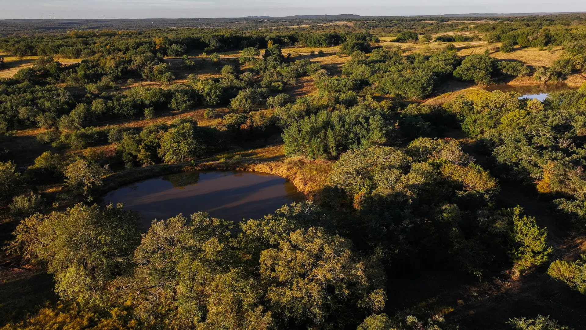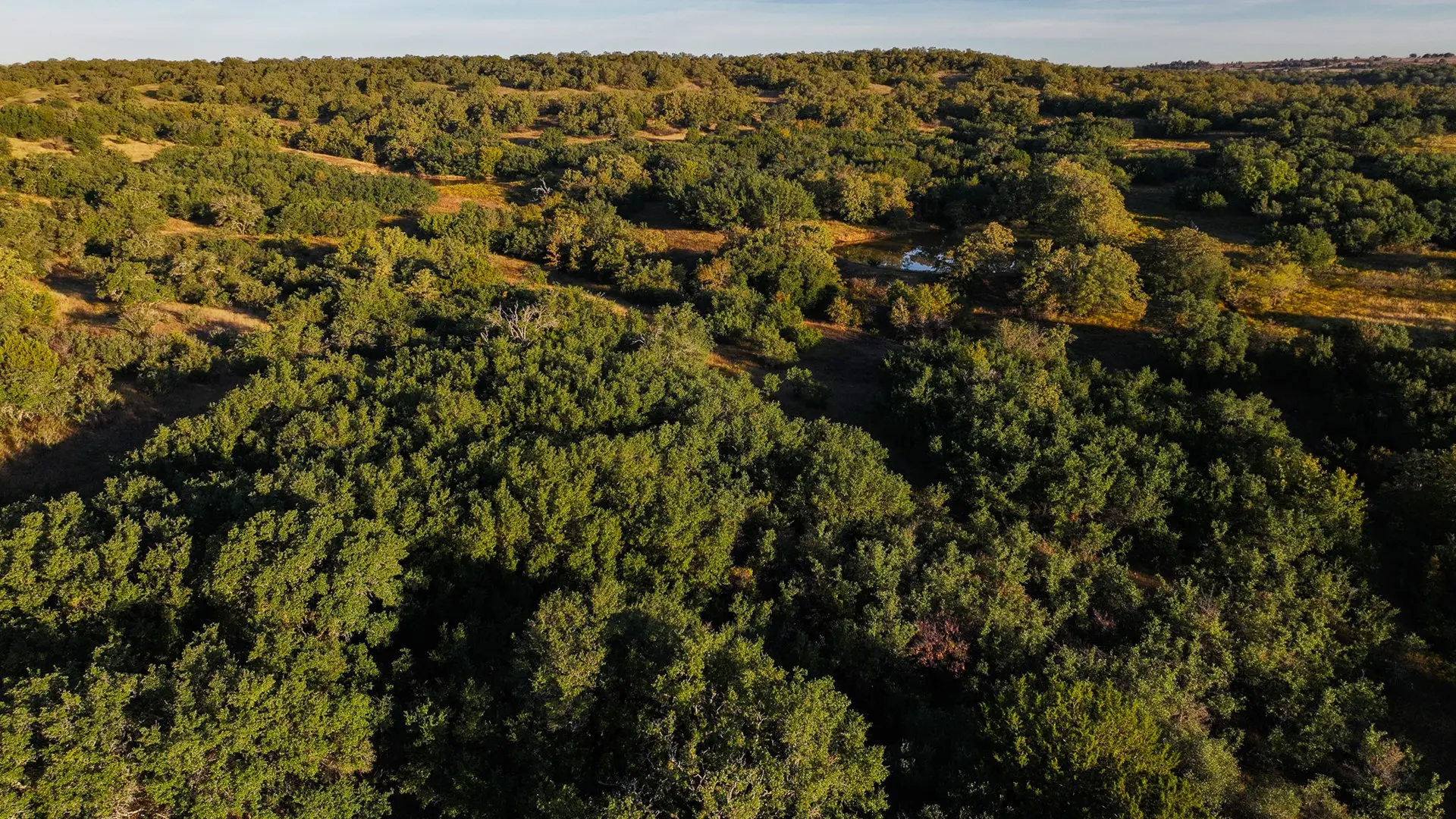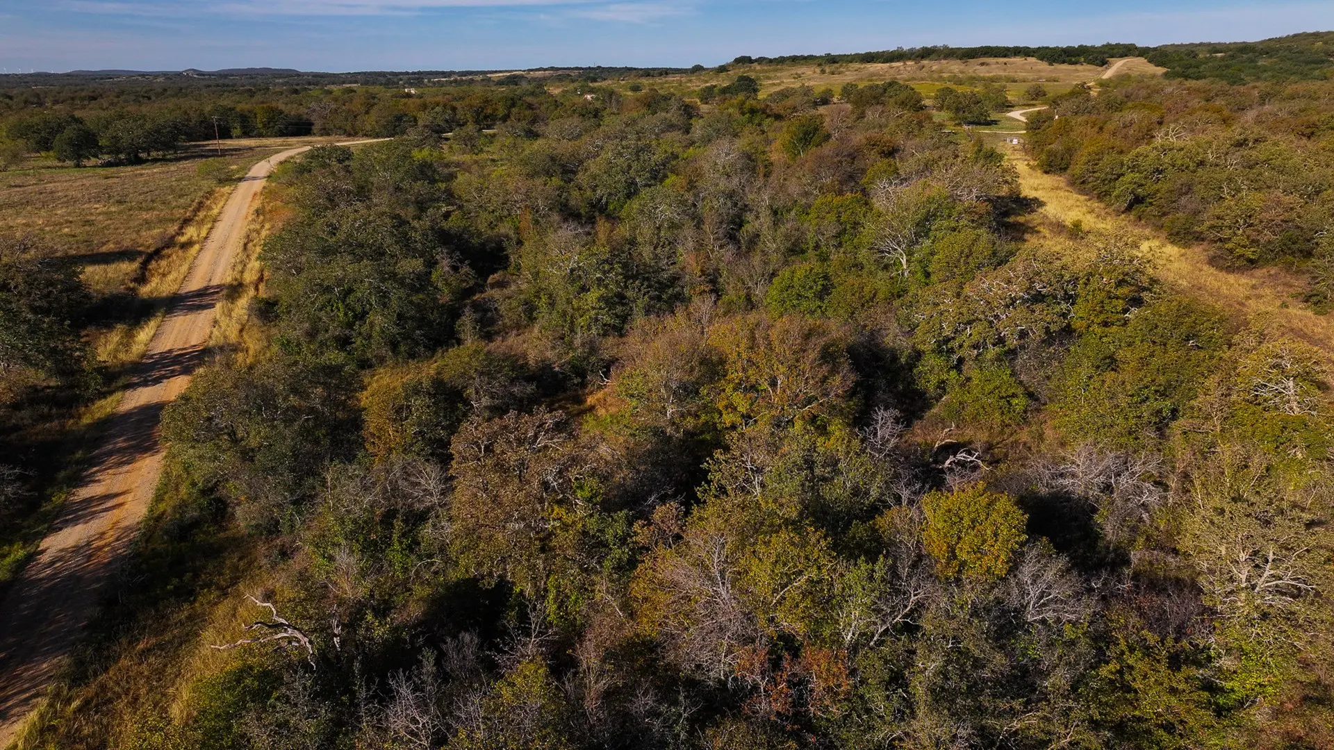 The Carpenter Ranch is renowned for its breathtaking views and diverse terrain, offering some of the most scenic vistas in Texas. The property features rolling hills with a high point reaching 1,170 feet and a low point of 990 feet, providing stunning panoramic views. The landscape is adorned with mature oak, pecan, and other hardwood trees, offering abundant cover for wildlife, including deer, turkey, hogs, and coyotes.