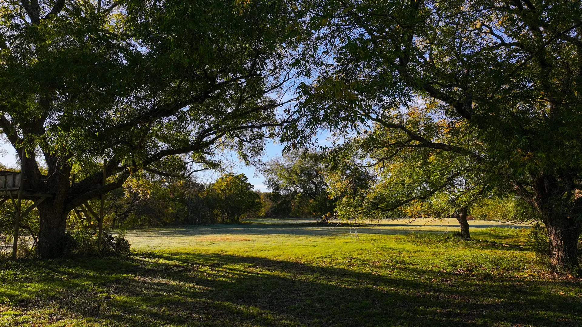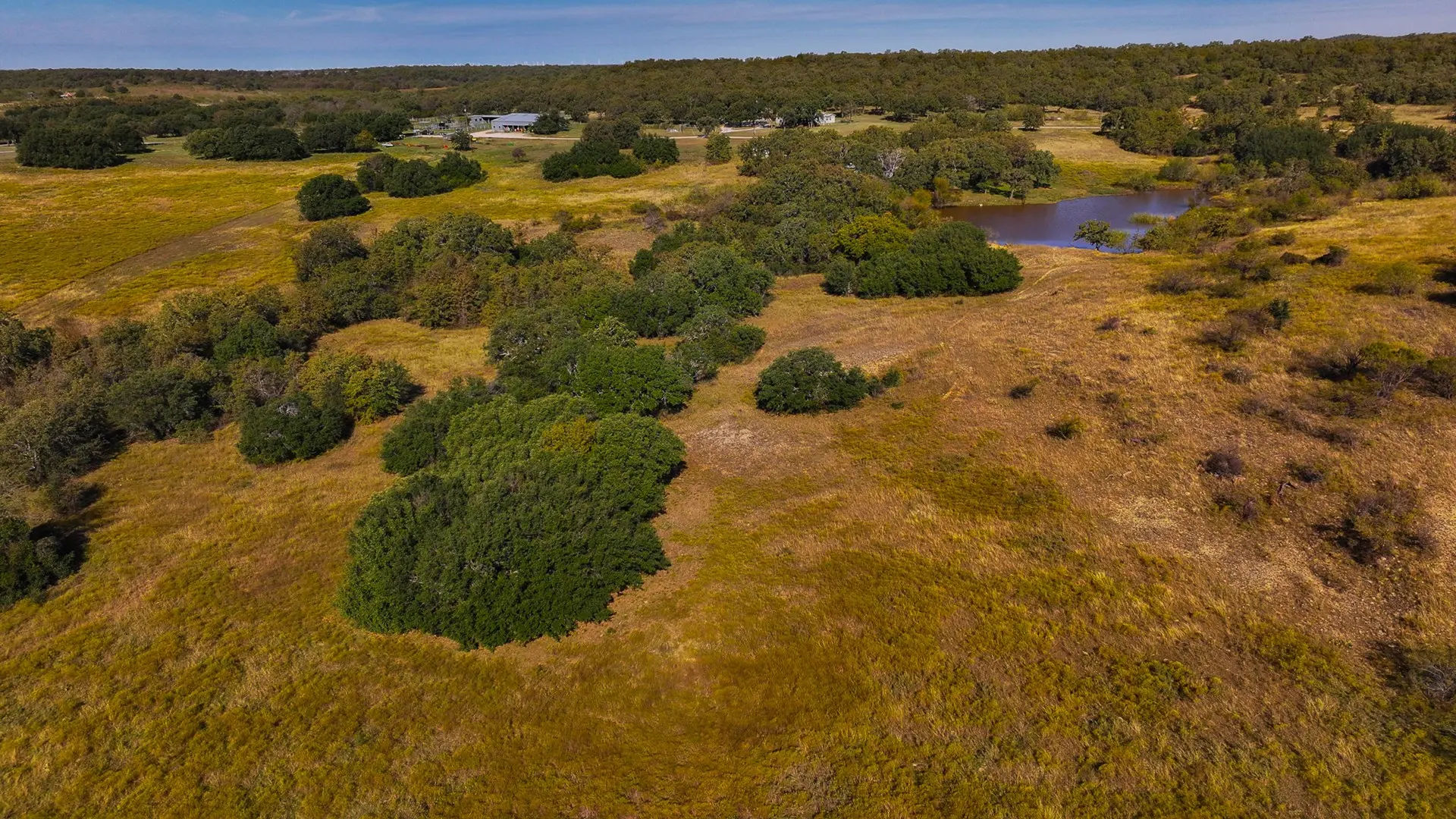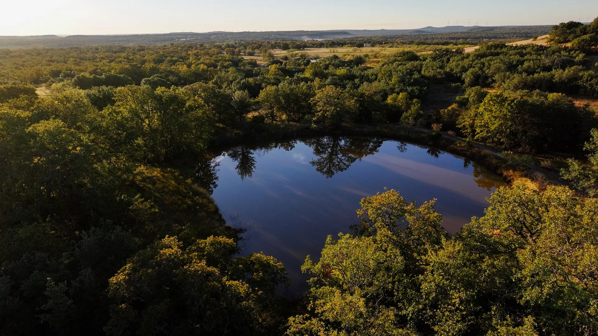 The Carpenter Ranch is renowned for its breathtaking views and diverse terrain, offering some of the most scenic vistas in Texas. The property features rolling hills with a high point reaching 1,170 feet and a low point of 990 feet, providing stunning panoramic views. The landscape is adorned with mature oak, pecan, and other hardwood trees, offering abundant cover for wildlife, including deer, turkey, hogs, and coyotes.