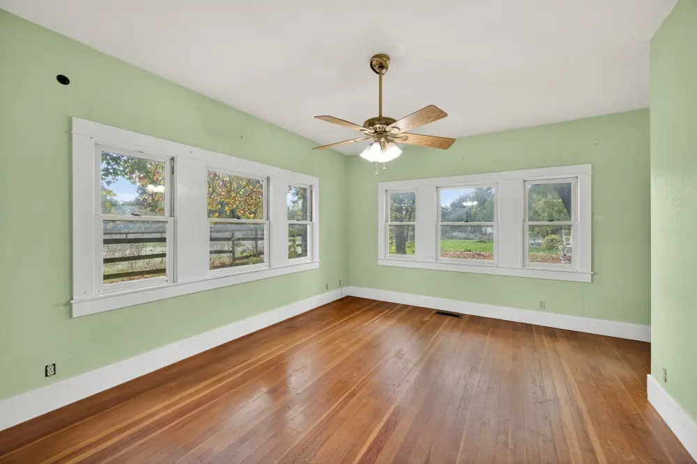 The home has original Douglas fir floors, warm natural light, and hand built details that give it a true farmhouse feel. The land is a blend of class one soils and softly rolling hills which creates an ideal environment for vineyards, orchards, horses, livestock, or your own small agriculture vision. With both an ag well and a domestic well, the property delivers the water strength rural buyers look for. A classic barn and stables sit just beyond the house and the layout reflects a real working homestead that has supported generations.