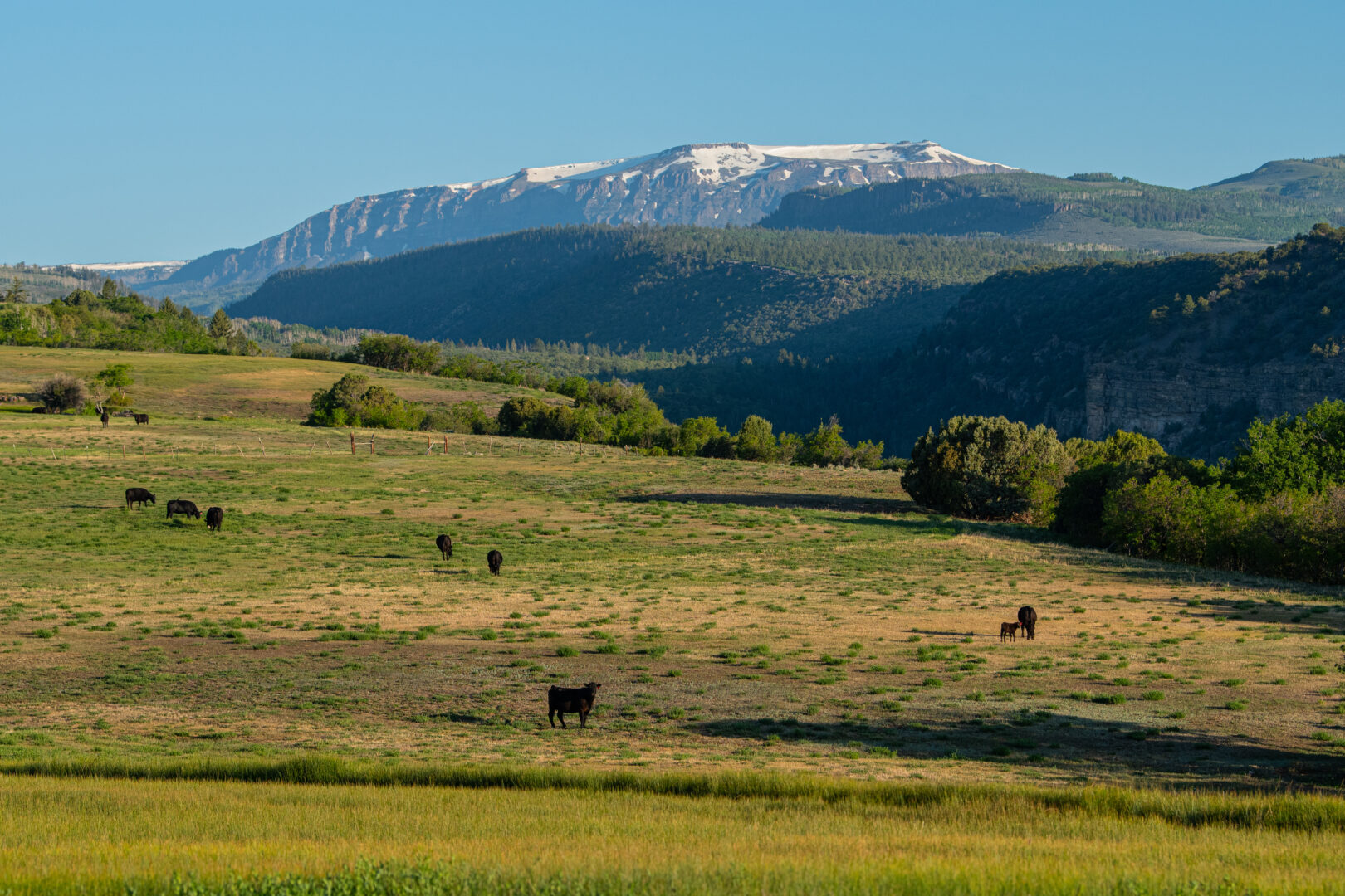 The Gates Ranch has a wonderful combination of assets that make it a truly pleasurable place to be. The ranch covers 744 acres, of which approximately 340 acres are irrigated hay meadows that produce about 250 tons of hay annually. It has a good set of improvements, including a modest but cozy log ranch home and a charming historic log bunkhouse that can sleep 12. The ranch is capable of supporting about 100 head of cattle year-round. The north side of the ranch gives way to a rimrock canyon that drops precipitously into Derby Creek, which is a free-flowing Colorado mountain trout stream.