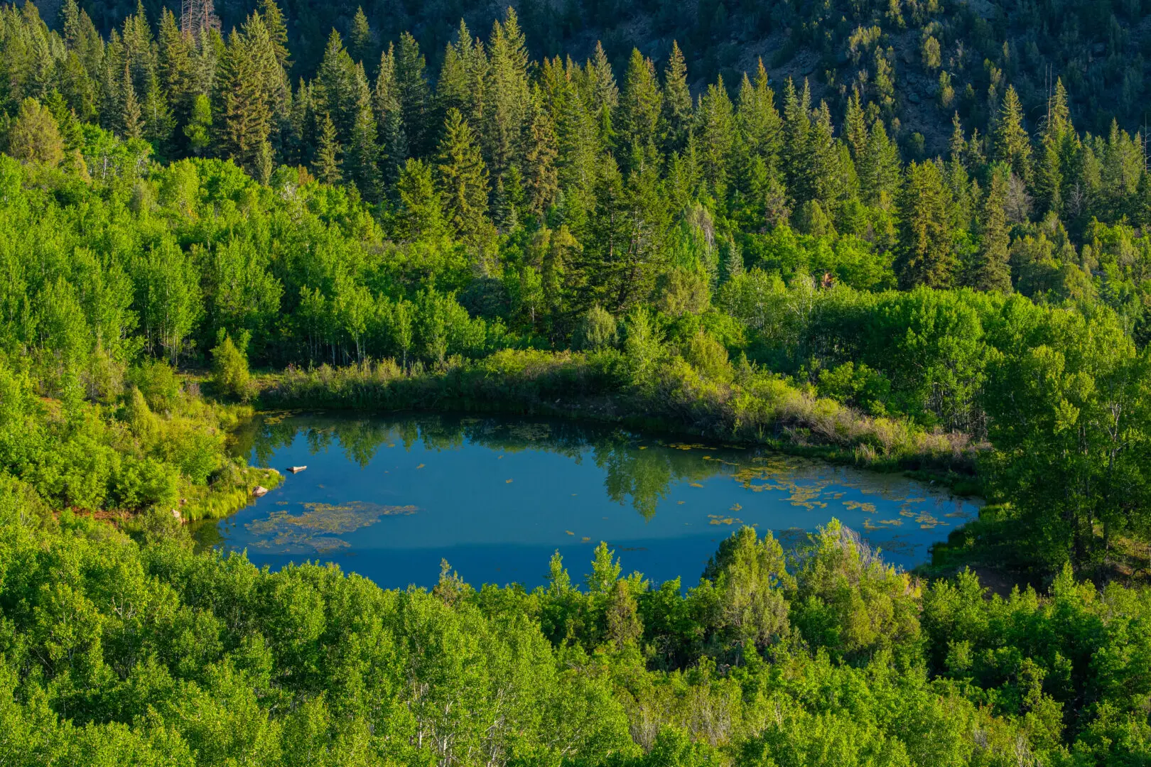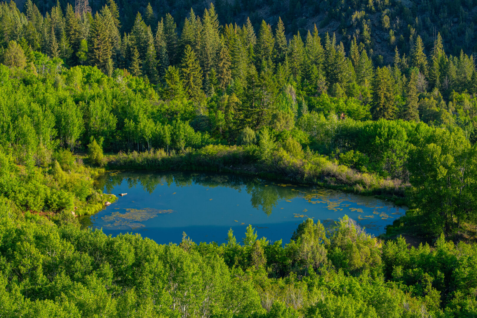 Derby Canyon, on the north side of the ranch, provides excellent big game habitat for elk and mule deer, resulting in excellent hunting opportunities. The open meadows of mountain grasses and alfalfa provide an alluring feed source for big game herds, while the canyon offers excellent cover and bedding habitat. Owner Kip Gates has been outfitting a slate of up to 24 elk hunters a year on the property with excellent success. Typically, the ranch receives 2-3 priority landowner mule deer tags each year, and Merriam’s turkeys abound on the property. The three-acre lake in Derby Canyon is deep enough to overwinter trout, and there are some lunker German browns and rainbows in the lake. It’s a favorite spot for friends and family to gather round, have a picnic, and catch fish on a warm summer day. Elk hunters can buy over-the-counter tags for second and third rifle season, and archery, muzzleloader, and first and fourth rifle season tags are an easy draw.