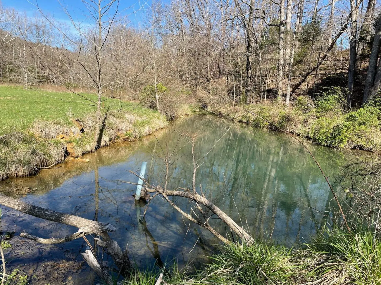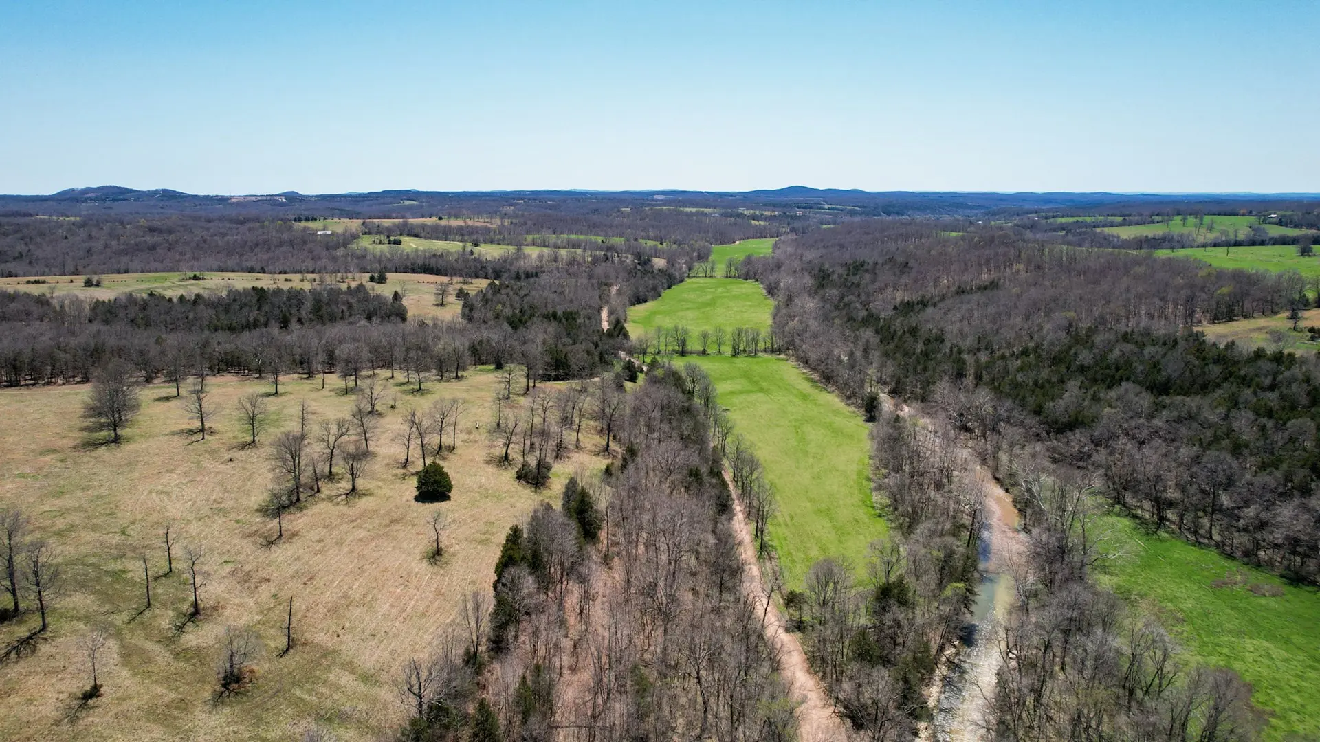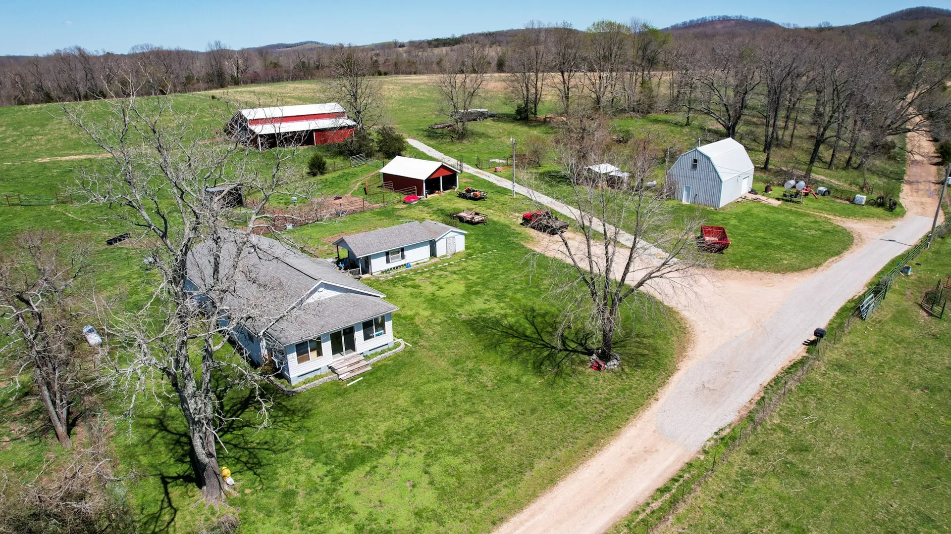 This large ranch for sale is located in the Ozark Mountains of Ozark County, Missouri. There are 1,124 acres known as ‘Timberknobs Ranch’ – 500 of these acres is pasture land, and 600+ acres is wooded. One mile of this property joins the Caney Mountain Game Refuge which is Missouri Conservation land. This piece of land has amazing features including gravel road frontage, year-round creek, 2 large springs, many smaller springs, 10 ponds, 9 separated pastures used for rotating grazing, excellent fencing, 60 acres of bottom land and hay ground & more! The pasture land fencing has steel posts and 5 barbs with metal corners. The bottom land has the creek flowing along the edge. There are several trails through the wooded areas, some commercial sized timber, and a large spring fed pond. This is some of the best hunting land in the state & could be right out your back door! The property has a nice 3 bed, 2 bath home with many out buildings. It’s not fancy but a nice farmhouse. A second house called ‘the hunting cabin’ features 2 bedrooms, 1 bath and is in good condition as well. It has some remodeling including a new roof, front porch, vinyl siding and more. This ranch has been in the same family for over 100 years! It is considered a century farm. There is a current tenant that lives in the main house and leases the land. He would be willing to continue in that capacity. This is a rare opportunity to own acreage of this size with as many amenities for less than $2250 per acre. Taxes are only $1 per acre per year. This is a private setting only 1 mile from a paved road, 8 miles to Gainesville & 25 miles to Ava. This is great for cattle, or a hunting retreat. Investors could turn this into a hunting reserve as the wildlife is already there and the wooded area joins over 6000 acres of the game reserve. The only access to the reserve is private joining land or the main entrance is 25 miles away. Seldom does a property like this hit the market!
