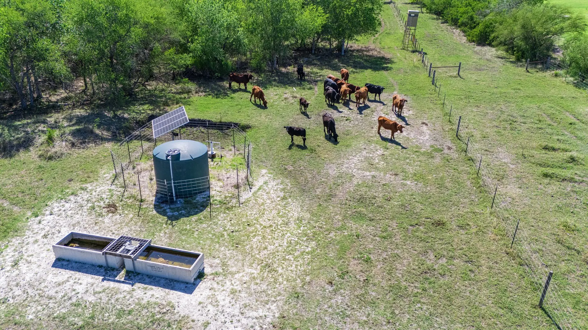 - One electric well (San Patricio Electric Cooperative) supplying water to two concrete citrons for livestock.