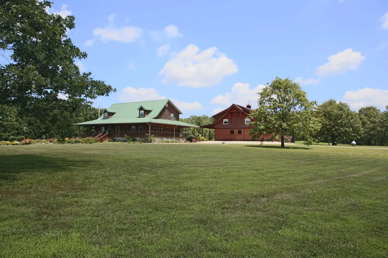 Versatile Ranch in the Missouri Ozarks that offers several possibilities for income from recreational activities. The ranch is currently producing income as a venue for weddings and reunions. This 318 Acre Ranch has already laid the ground work for a number of successful opportunities for someone wanting to build their own Guest Ranch, Equestrian Property, Hunting Retreat, Special Event Venue, Corporate Retreat, Dude Ranch, Equine or ATV trail riding, or Farm and Ranch. The property joins several thousands of acres of the beautiful Mark Twain National Forest on 3 sides, allowing for easy access to visitors wishing to go hiking, horseback riding , and more! The number of options for this property is immense and the owners have spared no expense in creating an amazing secluded sanctuary is is ideal for quiet getaways. This ranch can create a special place where guests can find friendship, rest, quiet and adventure all in one spectacular location. It will satisfy your guests’ longing for a laid back lifestyle while enjoying nature and the outdoors, which will have them coming back for generations to come. Beautiful landscapes abound at Trinity Springs. The topography is roll and hilly with hardwood forest and clear streams. Beauty is all around you wherever you go. The sounds and smells you experience here are of nature. Being immersed in God’s creation makes it easier to feel a sense of peace, and reflect. A walk through the ranch or National Forest helps a family leave their worries behind and renew the spirit. If a simpler way of life is what you long for then this property is right for you. It comes equipped with everything would need for a self-sustaining working cattle ranch. There is excellent pasture, large hay fields, numerous ponds and springs, and 100 tillable acres.