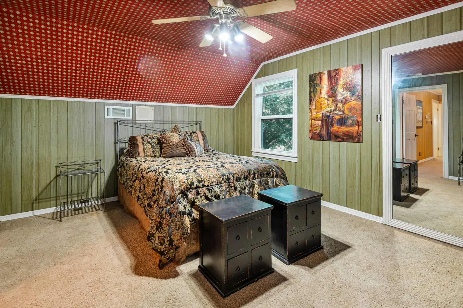 The complete outdoor kitchen and bar area creates an entertainer’s paradise with full cooking capabilities and comfortable bar seating for casual dining and conversation. A wood-burning fireplace extends the enjoyment year-round, while the full-size refrigerator and ample storage ensure seamless outdoor entertaining. Dedicated outdoor restroom facilities mean guests never need to interrupt their poolside experience, and the professional lighting system creates the perfect ambiance for nighttime gatherings under the East Texas stars.