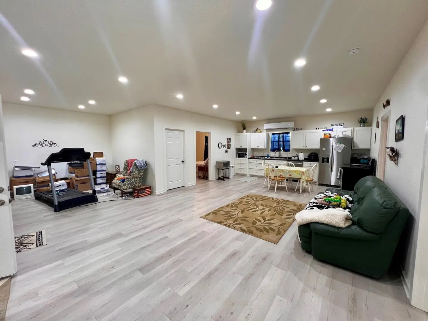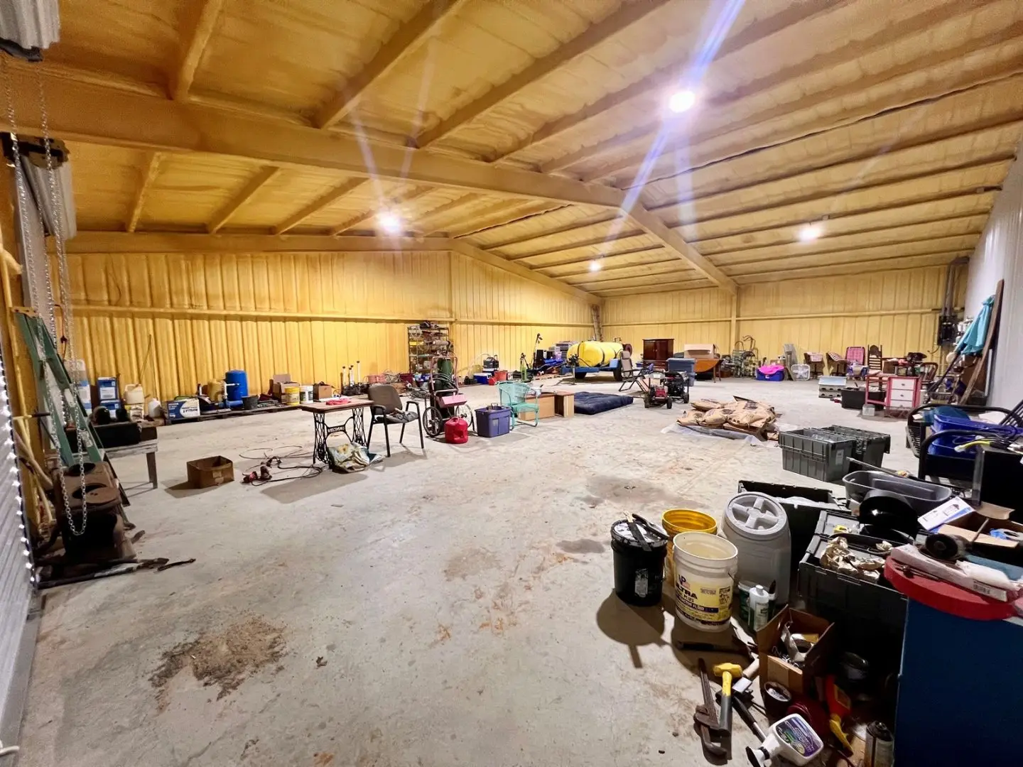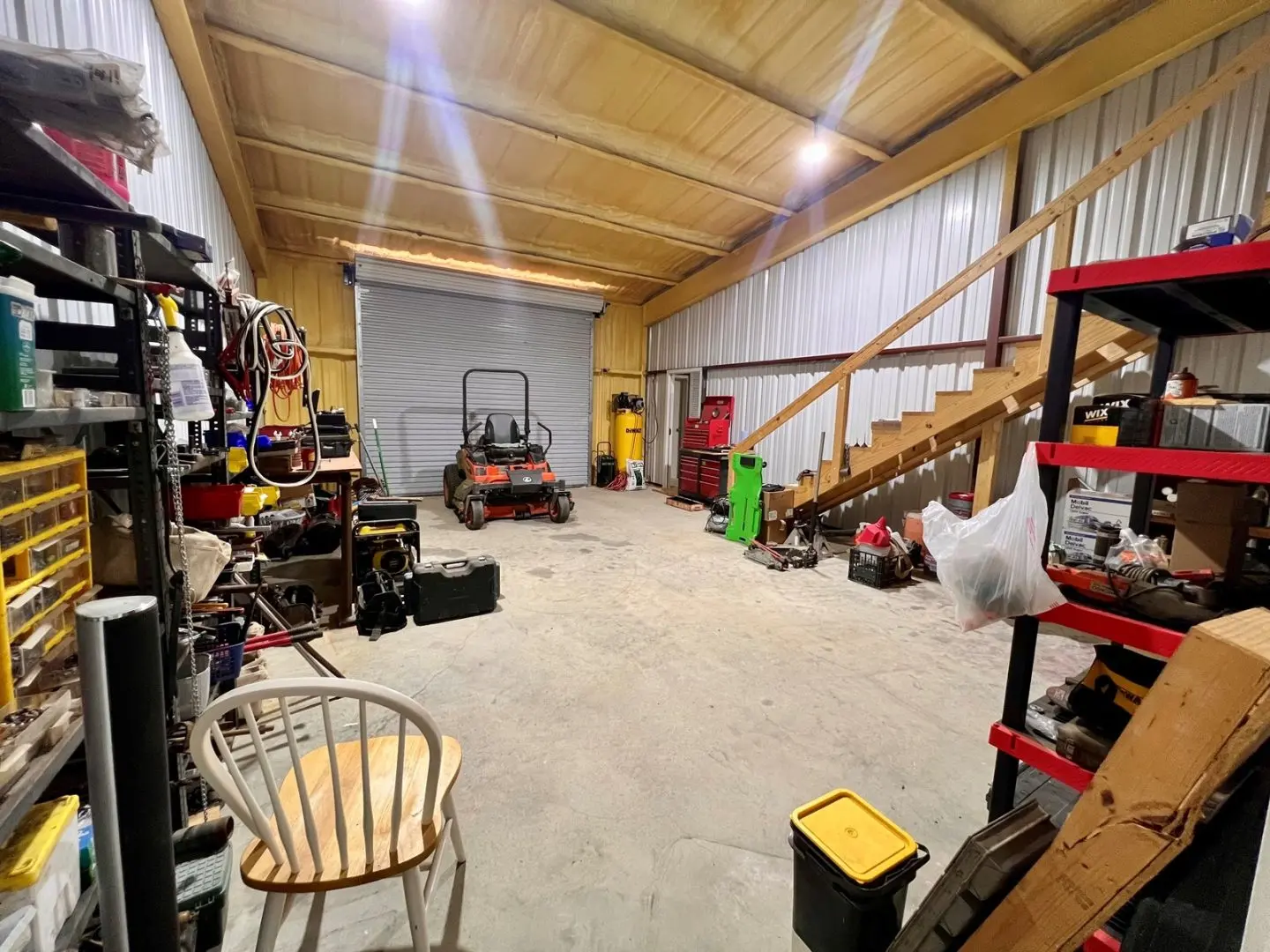 Outside, a spacious covered back porch beckons you to unwind and soak in the tranquility of your surroundings, while a large, insulated shop offers additional living quarters with 2 bedrooms and a bathroom, perfect for guests or extended family. Three bay doors, loft storage space, and an enclosed garage provide ample room for vehicles, equipment, and projects, while a covered attached equipment shed offers added convenience for outdoor storage needs.