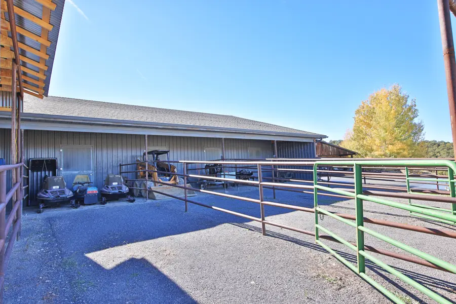 Outdoor living shines with a stunning covered patio featuring Pennsylvania green slate , wood ceilings, a waterfall feature, built in grill and smoker, and a fire pit area. Under floor tubing is installed and ready for hookup. Slate walkways connect to the barn, kennel area, and pet door access to the garage. Mature trees, underground sprinklers, and wildlife views complete the setting. Internet, landline, well, and septic are in place. Many furnishings and equipment items are negotiable.