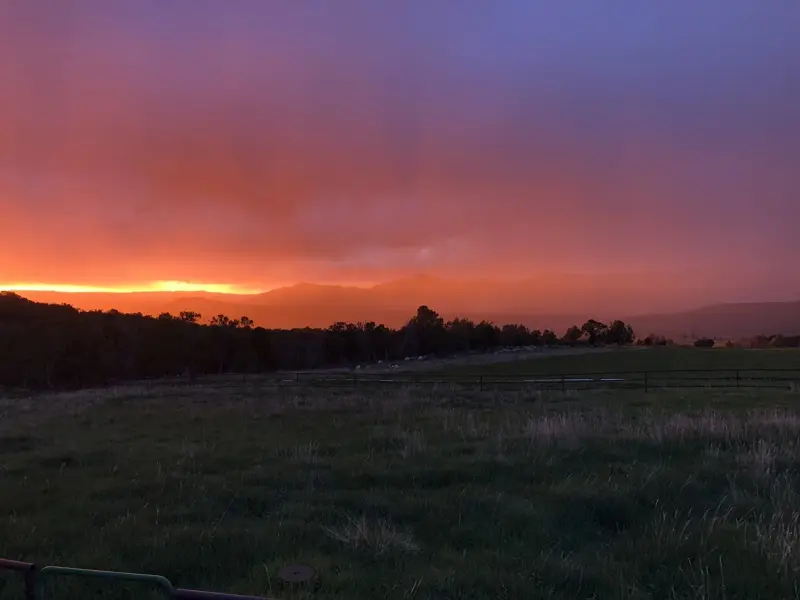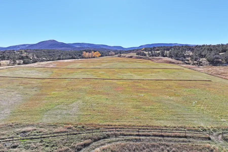 The 51 acres are fenced and cross fenced with strong steel pipe construction. Irrigation includes Vega and Cottonwood water shares serving 13 acres of hay and pasture with six risers for underground and gated pipe distribution. A spring feeds the pond and it is stocked with goldfish. Rolling hills and natural terrain offer hiking, hunting, and exploring on your own land.