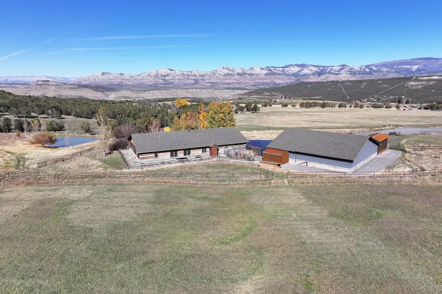 Western Colorado mountain working ranch with a stunning custom designed, energy efficient home surrounded by sweeping mountain and valley views. This property includes 51 acres of productive grass pasture and hay ground, sloping natural terrain, year-round water, a pond, and room to roam in privacy.