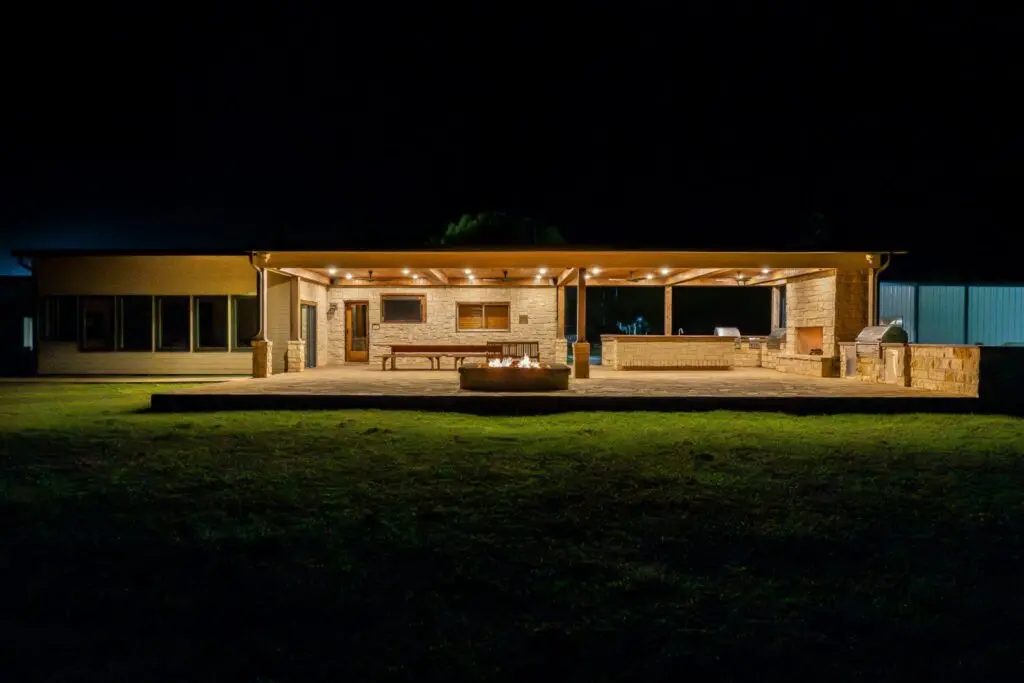 The high-fenced game ranch in Jim Wells County, Texas, is a turnkey hunting and recreational property. The main 3-bedroom, 2-bathroom house is 2,300 sq ft and comes fully furnished, featuring cedar finishes, and an attached sunroom with a fireplace. An 850 sq ft outdoor living area includes a full kitchen, gas fireplace, and fire pit. Additional amenities include a detached 1,000 sq ft game room with a wet bar and half bath, along with a guest casita.
